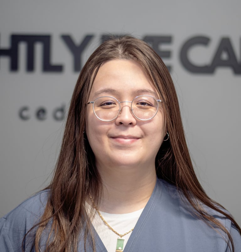 "안녕하세요! 카라입니다. 저는 텍사스 주립대학교에서 정보 시스템학을 전공했으며, 기술을 활용해 모든 환자분의 방문 과정을 매끄럽고 편안하게 만드는 일에 열정을 가지고 있습니다. 브라이틀리 아이케어의 검안 테크니션 어시스턴트로서, 저의 기술적인 꼼꼼함과 환자분들을 향한 진심 어린 마음을 더해 최상의 진료 경험을 선사해 드리겠습니다."